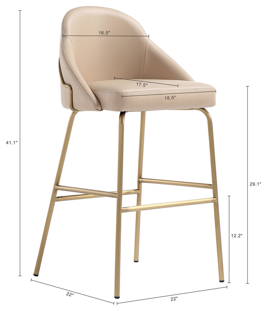 - Upon assembly, Barstool Dimensions Measure: 22 in. Length, 41.1 in. Height, 22 in. Depth.