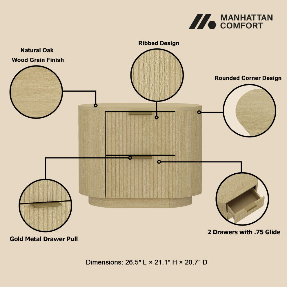 - Features a Natural Oak Wood Grain Finish with Ribbed Texture.
