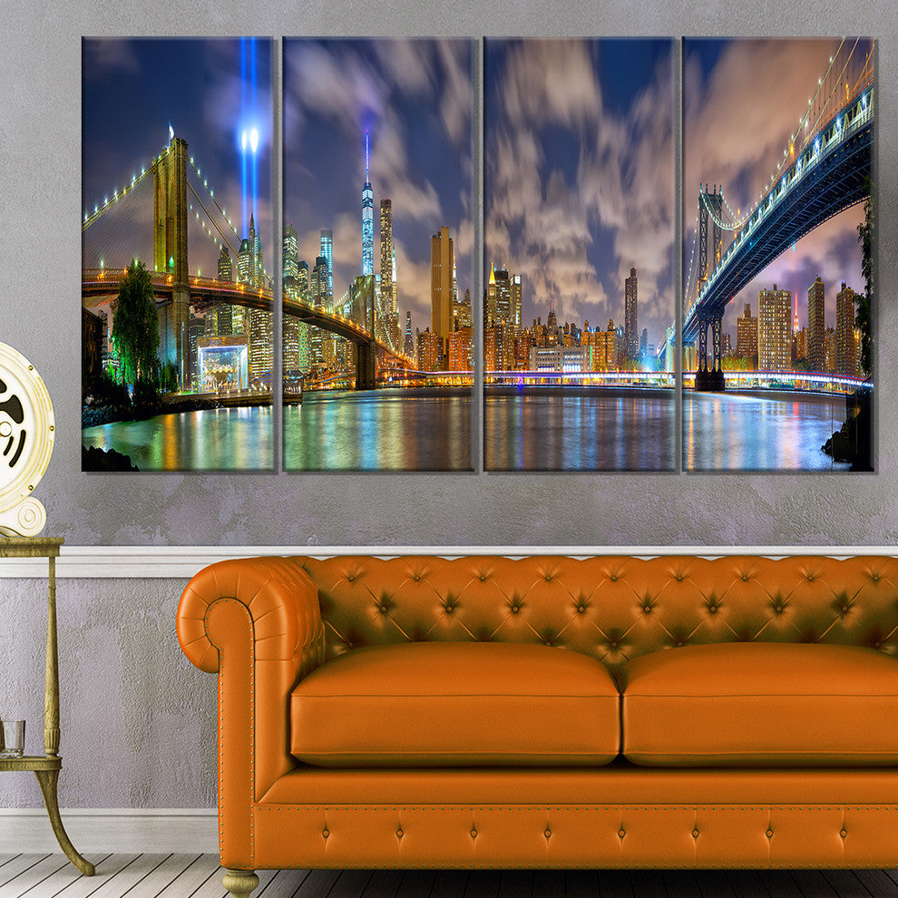 "Manhattan in Memory of September 11" Canvas Print48"x28", 4-Panels