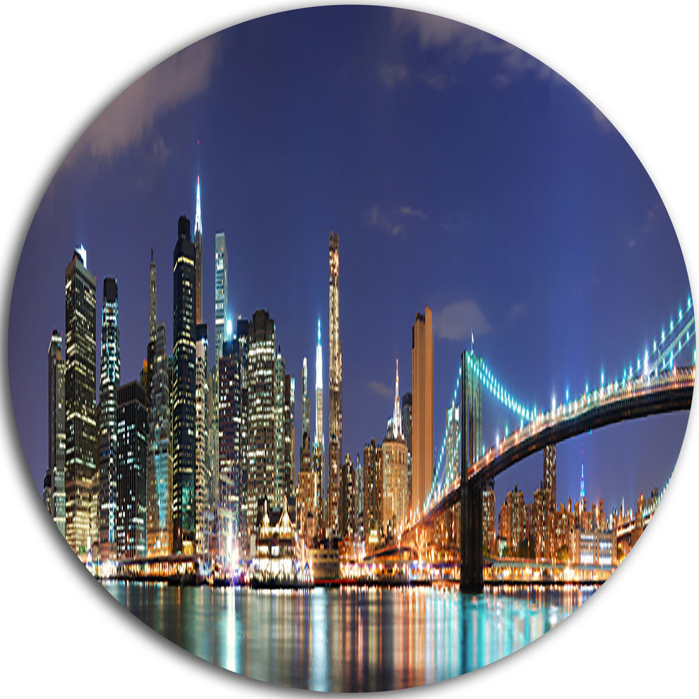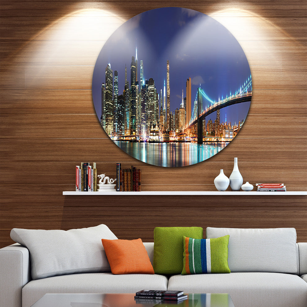 Manhattan Panoramic Skyline View, Cityscape Photo Round Wall Art, 38"