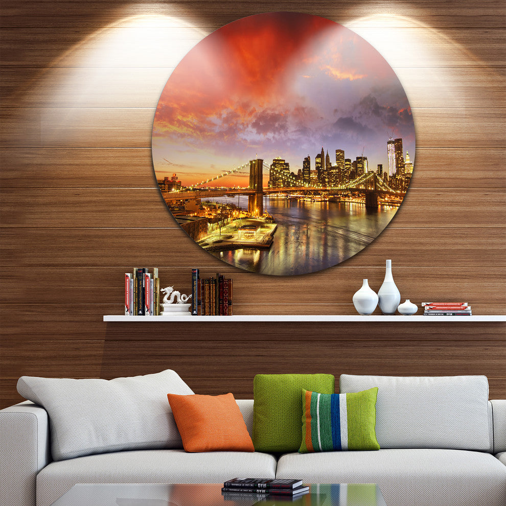 Manhattan Skyline At Winter, Cityscape Photo Disc Metal Artwork, 11"