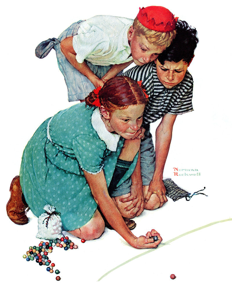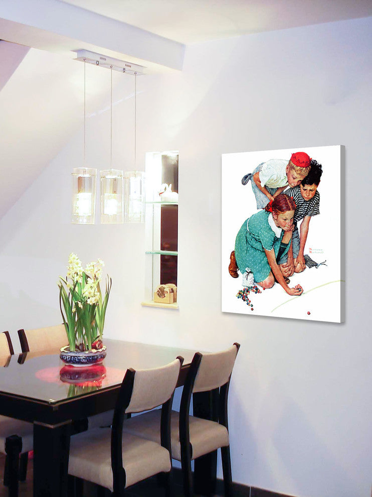 "Marbles Champ" Painting Print on Canvas by Norman Rockwell