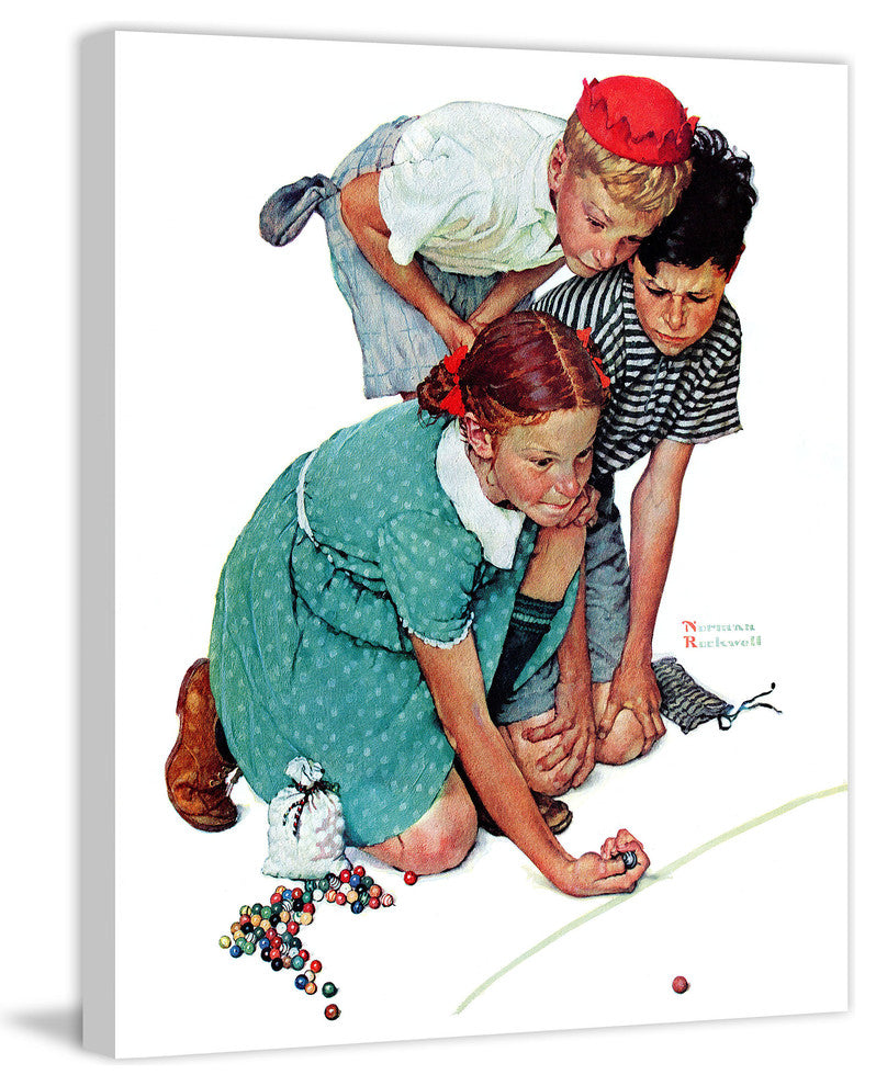 "Marbles Champ" Painting Print on Canvas by Norman Rockwell features vivid tones and supple artistry. Printed on canvas, this 30 inch wide by 36 inch tall piece will be an exceptional addition to any room. - Fine art canvas print from the Marmont Hill Art Collective- Professionally hand stretched- Gallery wrapped in sustainable, non-warping wood- Arrives ready to hang- Made in the USA- Includes a certificate of authenticity- Norman Rockwell was one of America''s leading artists. He chose to tell the story of the American dream, the detail of a simpler time, painted with warmth and humor. He tapped into the nostalgia of the American people with paintings that were often idyllic and expressed enthusiasm for the ordinary.