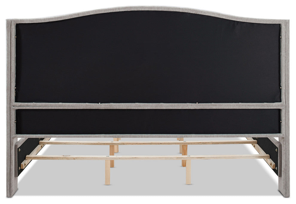 Marcella Upholstered Tufted Shelter Wingback Panel Bed, Silver Grey Polyester, King