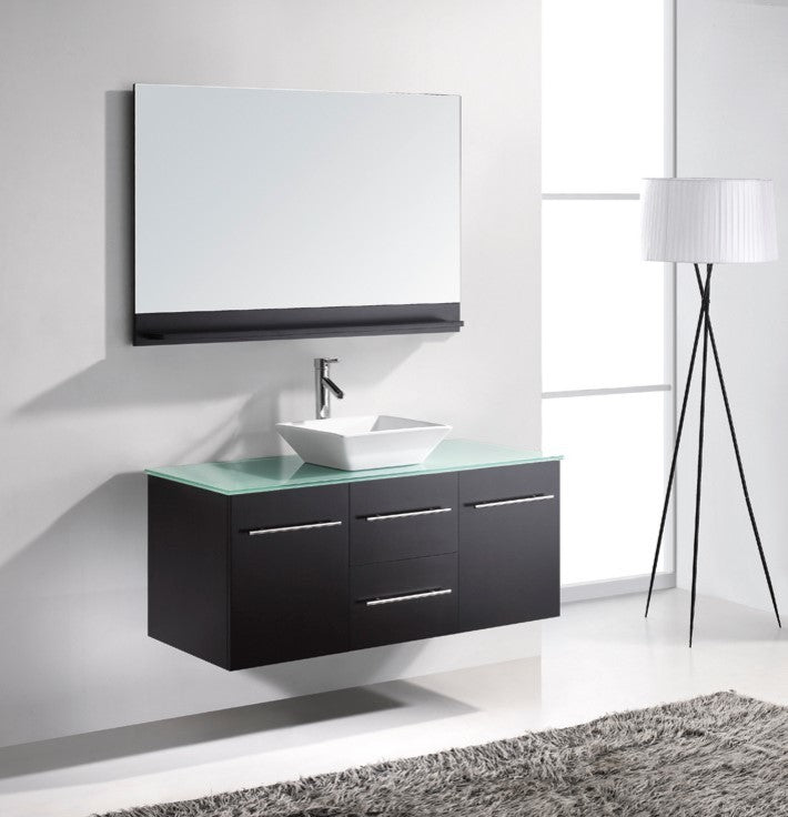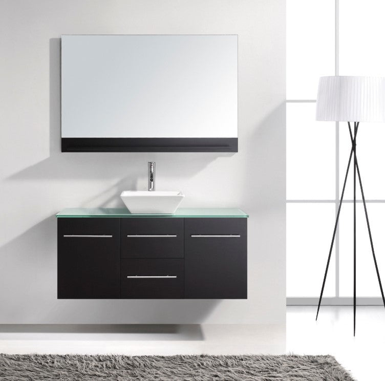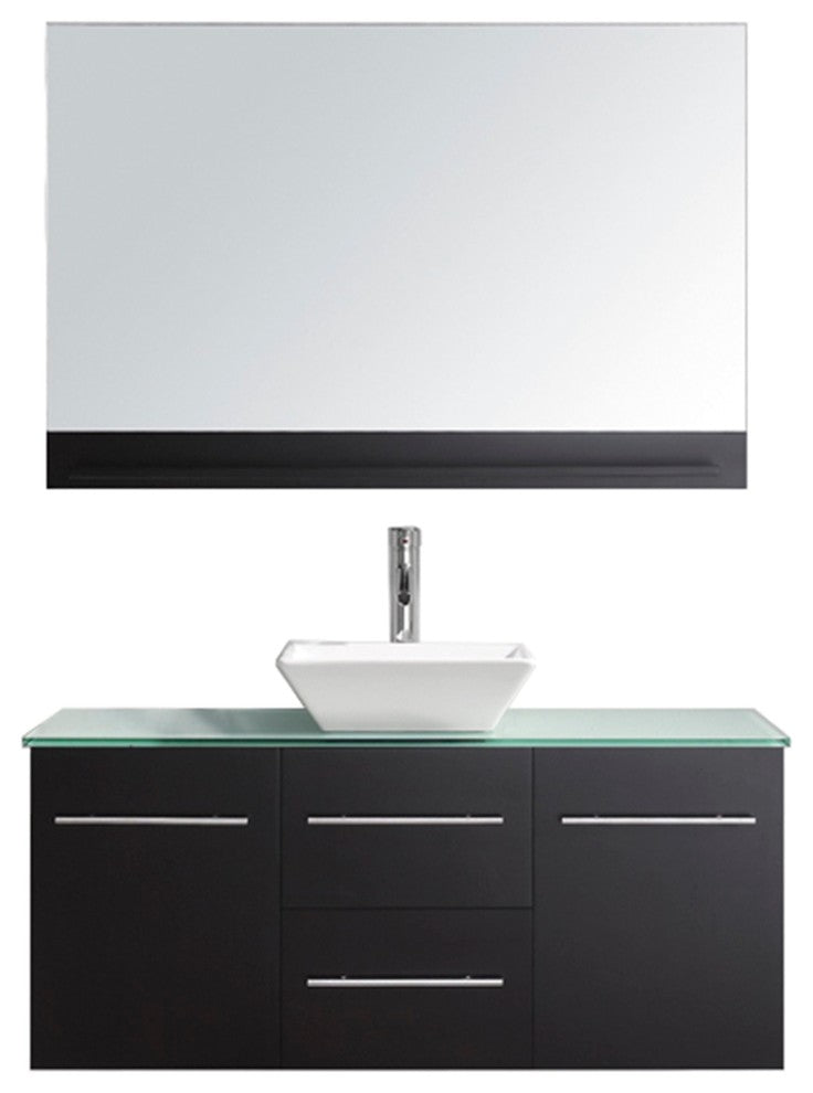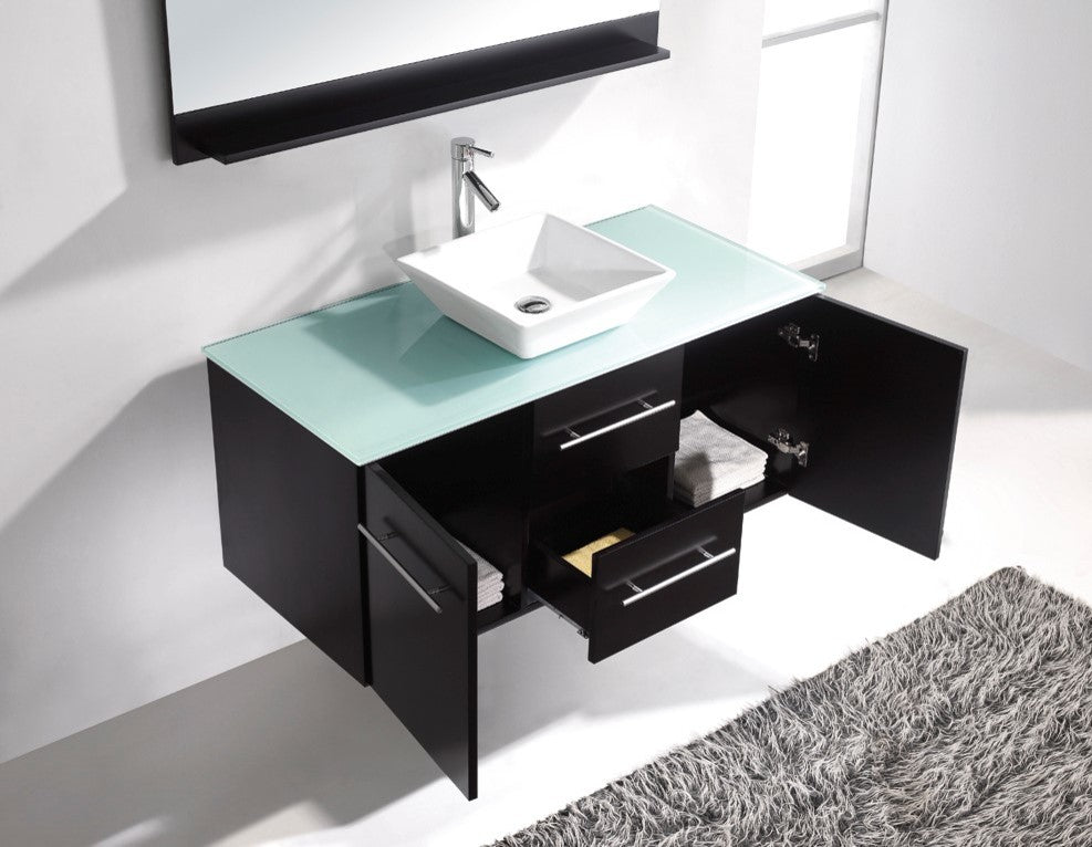 Marsala 48" Single Bathroom Vanity Set Espresso, Clear Tempered Glass Countertop