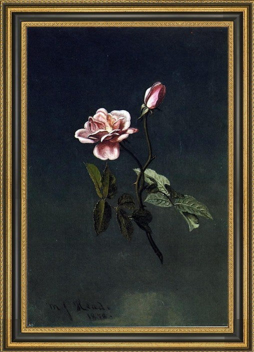 16" x 24" Martin Johnson Heade Pink Rose framed premium canvas print reproduced to meet museum quality standards. Our Museum quality canvas prints are produced using high-precision print technology for a more accurate reproduction printed on high quality canvas with fade-resistant, archival inks. Our progressive business model allows us to offer works of art to you at the best wholesale pricing, significantly less than art gallery prices, affordable to all. This artwork is hand stretched onto wooden stretcher bars, then mounted into our 3 3/4" wide gold finish frame with black panel by one of our expert framers. Our framed canvas print comes with hardware, ready to hang on your wall. We present a comprehensive collection of exceptional canvas art reproductions by Martin Johnson Heade.