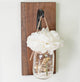 Mason Jar Sconce Wall Decor Walnut Color White Flower Narrow Hook with Lighting