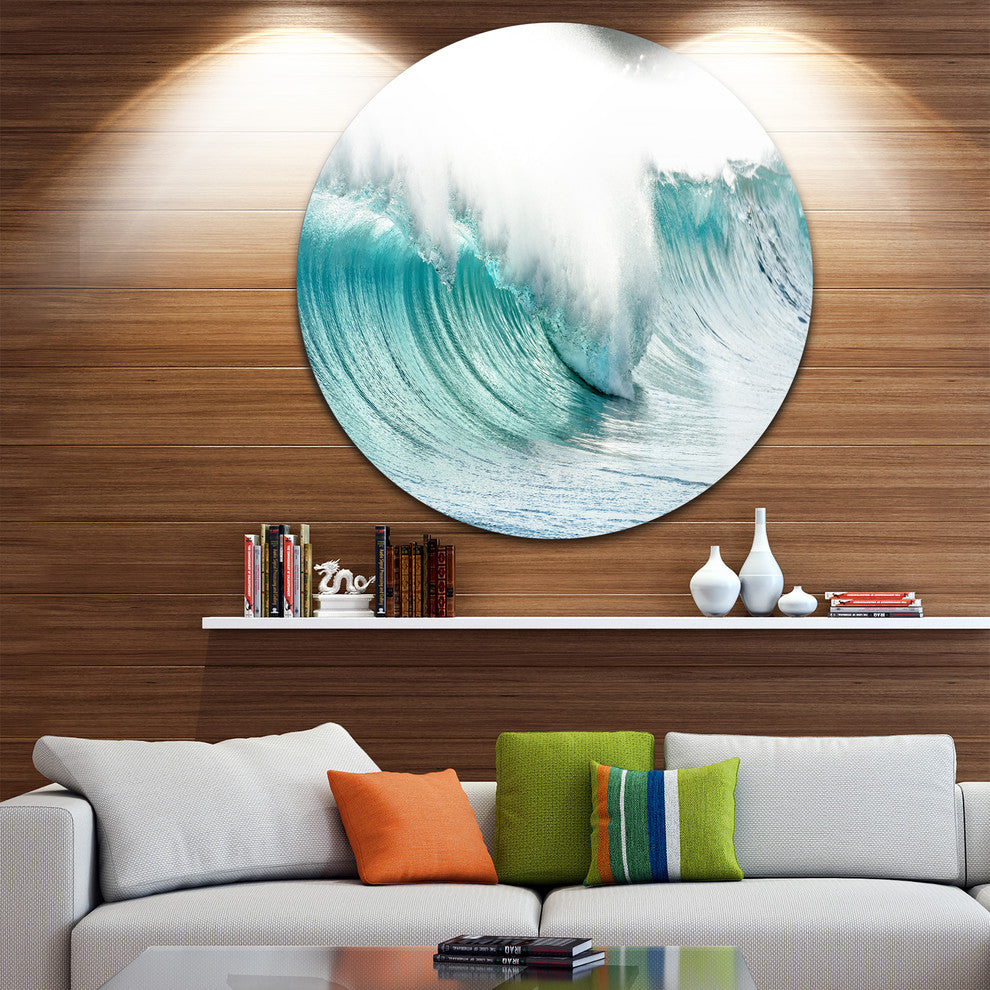 Massive Blue Waves Breaking Beach, Seascape Disc Metal Wall Art, 36"