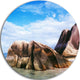 Massive Rocks In Seychelles Beach, Modern Seascape Round Wall Art, 23"