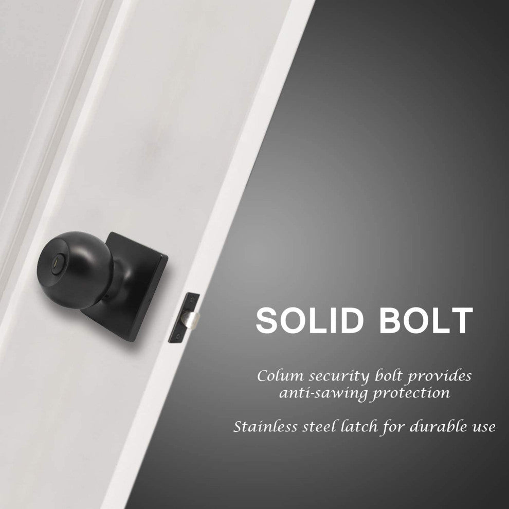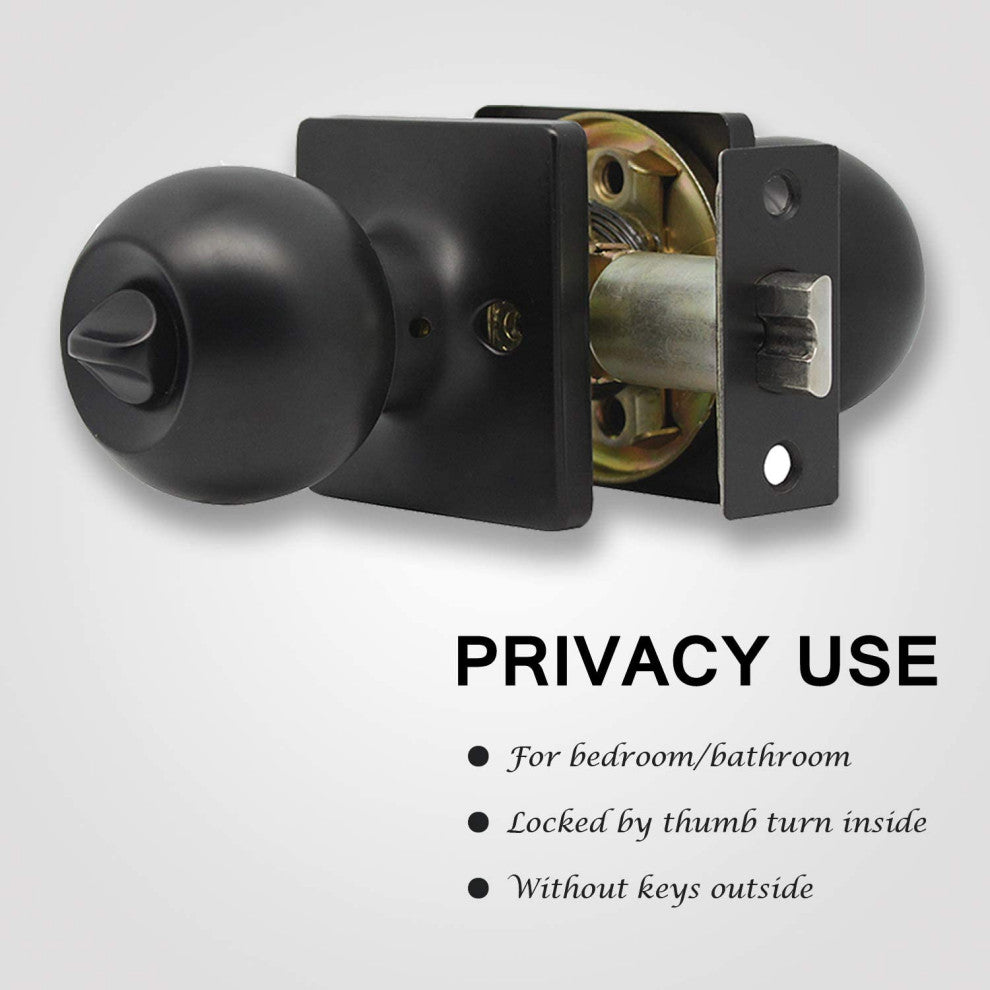 Features:EASY INSTALLATION: Install your knob set in a flash. All you need is a door and a tool set! No need for professional door fitters, you can do it yourself!PRIVACY FUNCTION: The door knob can be locked inside and opened outside in emergency WITHOUT keys. Use it for your guest rooms, bedrooms, bathrooms, interior locking doors and other privacy needs; Material: Metal; Finished Color: Matte Black.ONE SIZE FITS MOST: This black door knob fits 1-3/8" to 1-3/4" doors; Reversible for both left handed and right handed doors.DURABLE QUALITY: The solid steel & stainless steel, smooth finish, polished appearance and substantial, easy-to-grasp door knob will subtly elevate and enhance commercial areas or residences alike.SQUARE ROSETTE: It"™s not just a door knob "” it"™s a statement piece. These gorgeous knobs with no protruding flanges, screws or rough edges ensures completely safe and easy operation, are sure to add a touch of sophistication to your home.