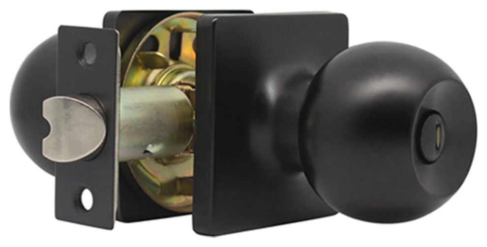 Matte Black Privacy Door Knobs with Square Rosette, 1 Piece