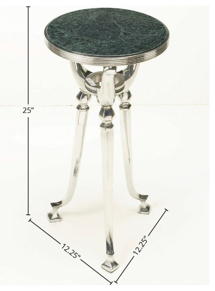 The Mattox End Table is a versatile furniture piece that you can use however you like. Be it a telephone table, a plant stand, or a side table, the end table is sure to accommodate your various needs. It boasts a marble top supported by a solid aluminum tripod base. This end table brings a unique, eclectic feel.Features:Overall product dimensions are 12.25" W x 12.25" D x 25" HThe end table sports a solid aluminum baseMarble round table topUnique tripod legs reminiscent of eclectic designLow-maintenance and easy to cleanDimensions:End TableAssembled Product: 12.25 inches wide x 12.25 inches deep x 25 inches highWeight Capacity: 50 pounds