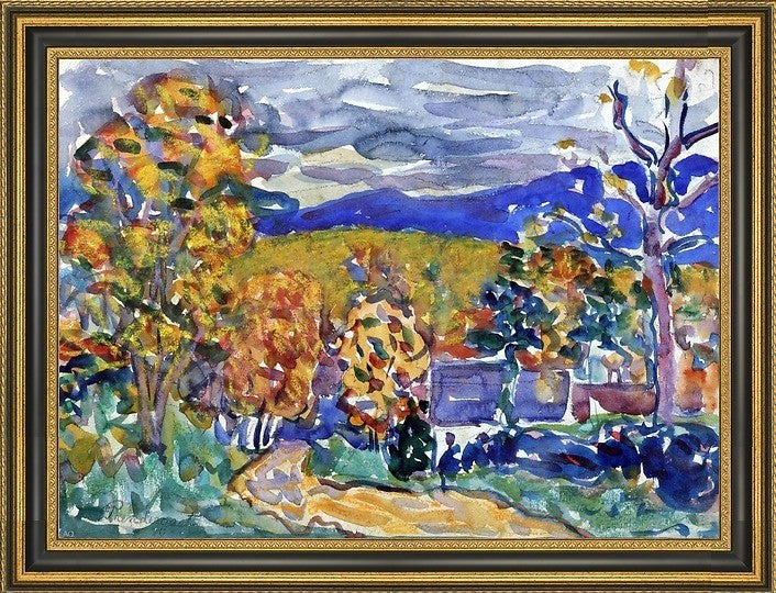 21" x 28" Maurice Prendergast Autumn in New England framed premium canvas print reproduced to meet museum quality standards. Our Museum quality canvas prints are produced using high-precision print technology for a more accurate reproduction printed on high quality canvas with fade-resistant, archival inks. Our progressive business model allows us to offer works of art to you at the best wholesale pricing, significantly less than art gallery prices, affordable to all. This artwork is hand stretched onto wooden stretcher bars, then mounted into our 3 3/4" wide gold finish frame with black panel by one of our expert framers. Our framed canvas print comes with hardware, ready to hang on your wall. We present a comprehensive collection of exceptional canvas art reproductions by Maurice Prendergast.