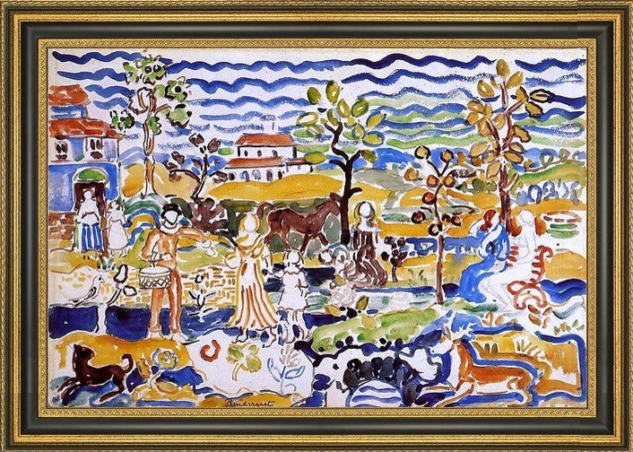 16" x 24" Maurice Prendergast Decorative Composition framed premium canvas print reproduced to meet museum quality standards. Our Museum quality canvas prints are produced using high-precision print technology for a more accurate reproduction printed on high quality canvas with fade-resistant, archival inks. Our progressive business model allows us to offer works of art to you at the best wholesale pricing, significantly less than art gallery prices, affordable to all. This artwork is hand stretched onto wooden stretcher bars, then mounted into our 3 3/4" wide gold finish frame with black panel by one of our expert framers. Our framed canvas print comes with hardware, ready to hang on your wall. We present a comprehensive collection of exceptional canvas art reproductions by Maurice Prendergast .