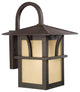 The Generation Lighting Lighting Medford Lakes one light outdoor wall fixture in statuary bronze is an ENERGY STAR qualified lighting fixture that uses fluorescent bulbs to save you both time and money. The Medford Lakes outdoor lighting collection by Generation Lighting Lighting is Arts and Crafts inspired with simple organic lines, yet big on style with linear design details, contrasted with sweeping arches - which demonstrates a subtle Asian influence as well. The Etched Hammered Glass with Light Amber Tint creates a warm glow and beautifully complements the Statuary Bronze finish. The assortment includes small, medium and large one-light outdoor wall lanterns, a one-light outdoor post lantern, a one-light outdoor pendant and a two-light outdoor ceiling flush mount. Both incandescent lamping and ENERGY STAR-qualified LED lamping are available, and most of the fixtures easily convert to LED by purchasing LED replacement lamps sold separately.