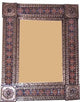 This is a medium-size tin mirror, the actual glass mirror measures 18.5 x 14.5", and the frame is about 5" wide on each side. It is fully decorated all the way around its frame. These decorations are known as punched tin. In the frame central part has hand-painted Talavera style grenada tile which has a blue background along with browns, oranges, greens, and whites in a colorful combination that you will enjoy.This mirror will delight your home d?cor. It will fit any dressing area such as your bathroom or a hallway. On each corner it has a square with a flower in the center. All of it in a single piece of tin. A piece of art that you will be delighted with, and proud to hang it on your walls."Hand-hammered and mold-cut to perfectionHandcrafted by Mexico''s Finest ArtisansWe include 1" long brown screws in all of our hammered copper switch plates