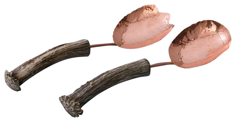 Medium Spoon Salad Set, Copper, Burr Antler Handle
