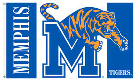 These full color Officially Licensed 3'' x 5'' University of Memphis flags are made of 150 denier polyester with an extra wide header and have two grommets on the 3 foot side for flying from a flagpole. To be used outdoors or as decoration indoors. The flags have been approved by Collegiate Licensed Products and the University.