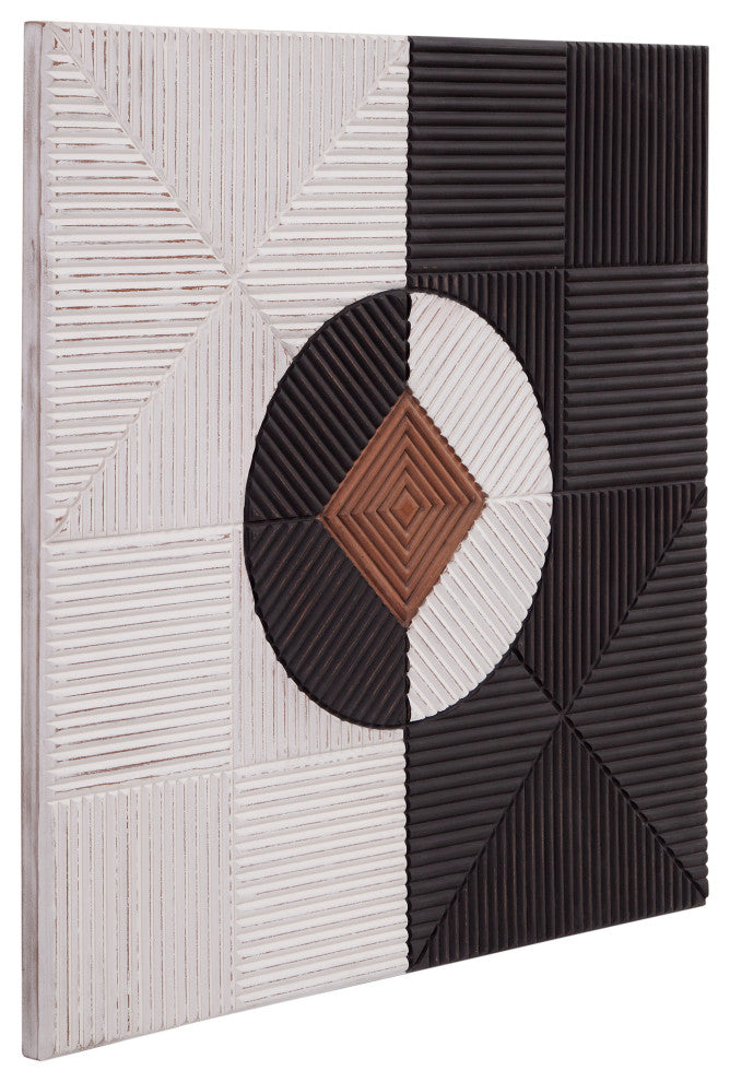 Mercury Wall Hanging is a wooden square wall hanging featuring a textured geometric pattern.