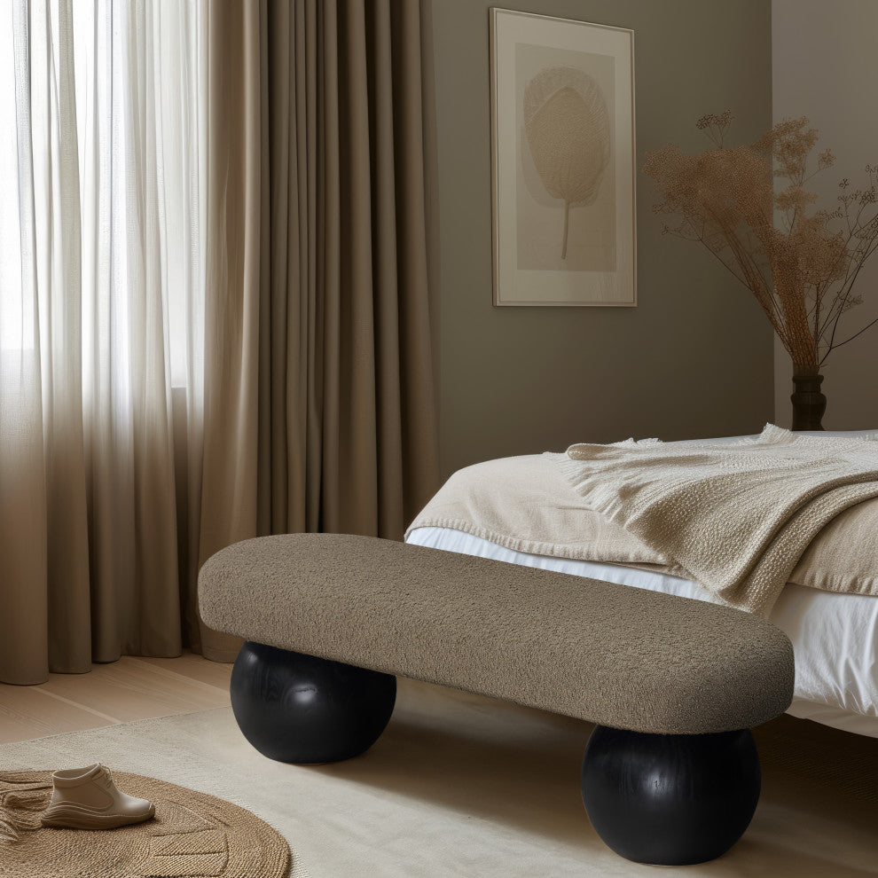Elevate your home decor with this stunning Bowie Boucle Fabric Bench. The rich olive boucle fabric gives it a luxurious and sophisticated look that is sure to catch the eye of guests. The black finish on the solid ash wood ball-shaped legs adds a touch of charm and elegance to the piece. Whether you''re using it as a stylish seating option in your living room or as a chic accent piece in your bedroom, this bench is sure to impress.Overall Product Dimensions: 59.5" W x 18" D x 17" HRich Olive Green Boucle FabricBlack Finish Solid Ash Wood Ball Shape LegsArt Deco DesignSeat Dimensions: Seat Width: 59"Seat Height: 17"Seat Depth: 18"