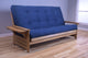 Mesa Frame Queen Futon With Butternut Finish, Suede Blue