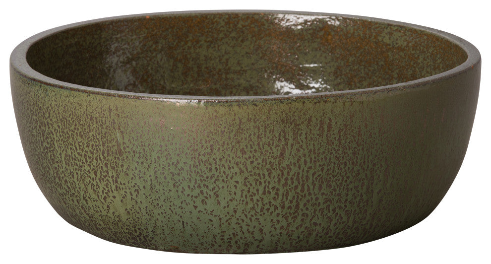 Shallow planter with a metallic green glaze, excellent for indoor use and accents. Clean by hand to preserve the finish of the planter. Due to the hand made nature of the piece, color may vary slightly.