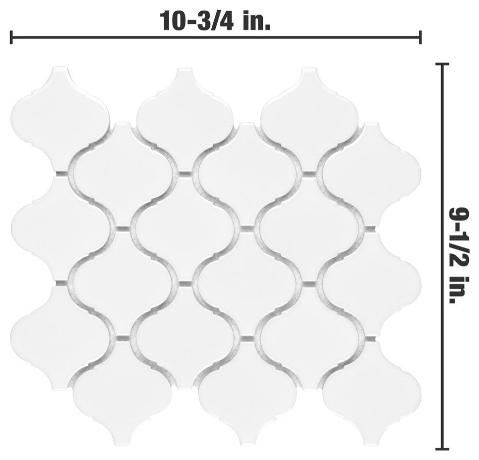 Our Metro Lantern Glossy White Porcelain Floor and Wall Mosaic Tile instantly elevates spaces through its distinctive lantern shaped design. The glossy white is uniformly applied to create a striking matte surface that offers eye-catching beauty. Individual lantern pieces are arranged on an interlocking mesh to create a seamless installation. This minimalistic geometric porcelain mosaic is unique yet simplistic enough to integrate into any design, ranging from traditional style renovations to modern home projects. Its impervious and frost resistant features make this an ideal tile for indoor and outdoor use, including backsplashes, bathrooms, kitchens and patios. Tile is the better choice for your space. This tile is made from natural ingredients, making it a healthy choice as it is free from allergens, VOCs, formaldehyde and PVC.
