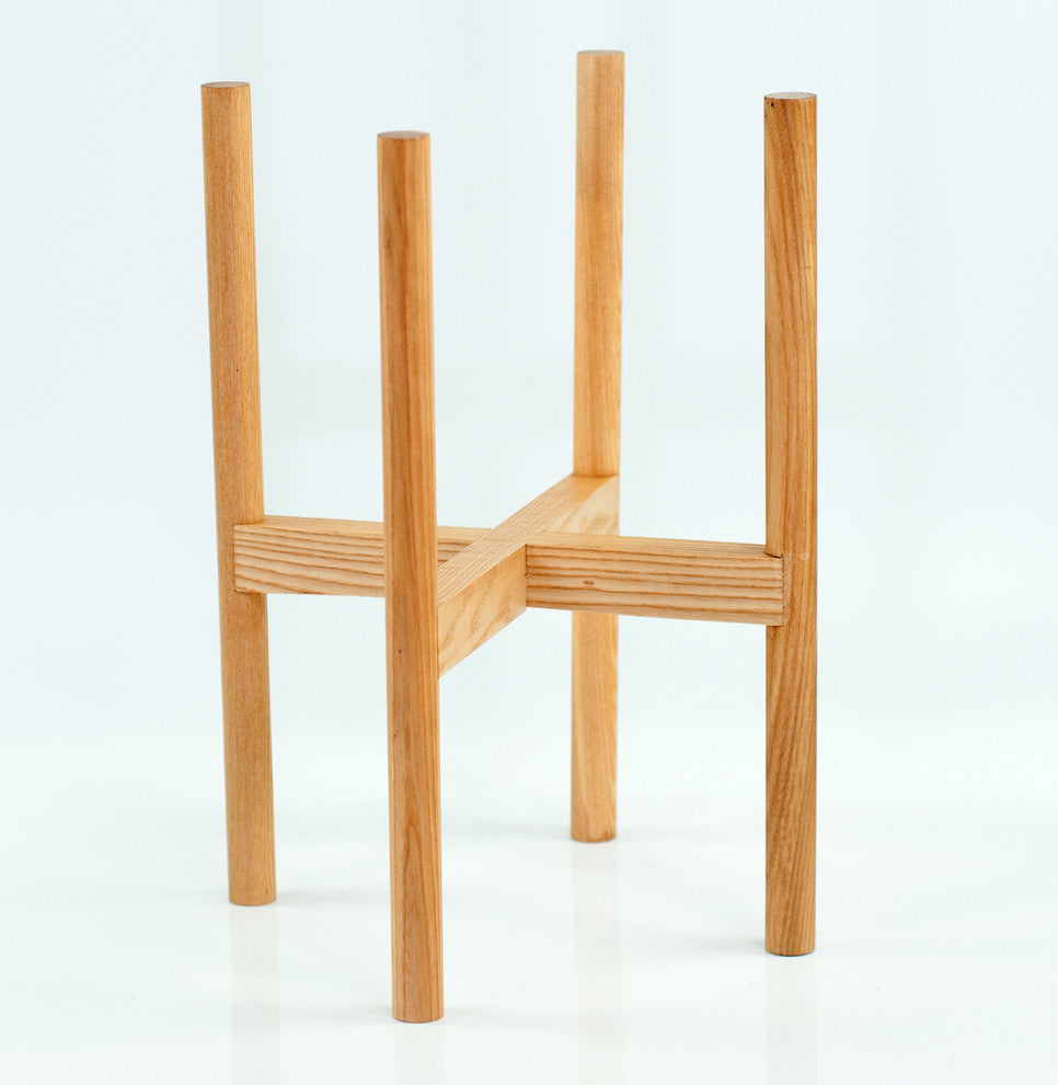 It is mid-century modern design wood plant stand. This large wooden plant stand is simple and elegant. It is made from beech hardwood and is made using methods for strength and durability. It is perfect to place next to couch, furniture or in a corner and will add a touch of sophistication to any plain planter. This wood plant stand is for indoor use only.•  Ceramic pot and plants not included.Specifications of Dimension:Color: Natural Wood ColorWood Type: BeechInner Width: 10.5"� or 26.5 cm"”can fit a 10"™"™ pot or a smaller pot;Total height of the stand: 17"³ or 43 cm;Height from platform to top of legs: 6.5"³ (If you flip the stand over to have your pot sit lower, the height from the platform to top legs is 9"™"™);Maximum of weight withstood: 60LBS.