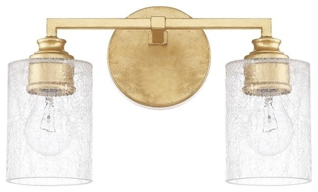 Milan 2 Light Vanity with Capital Gold Finish and Iced Glass&nbsp