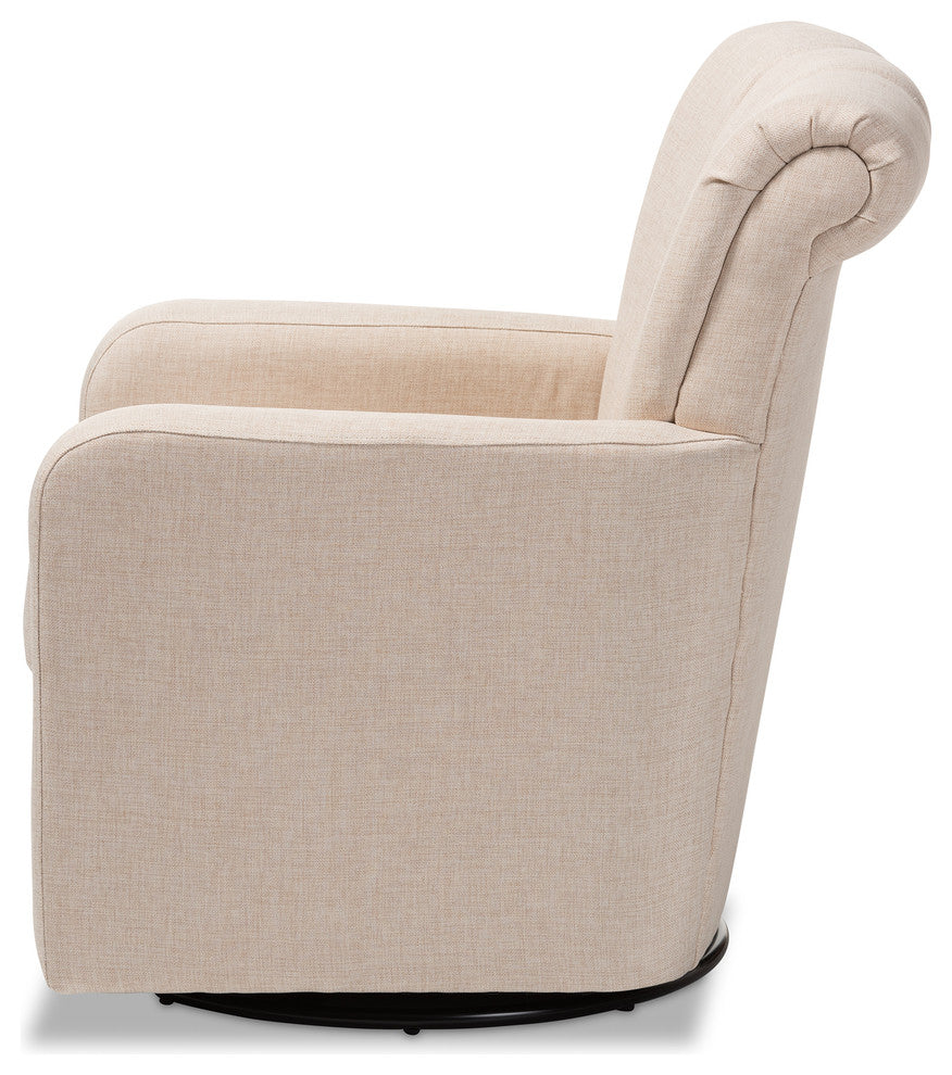 Create a cozy nook in your space with the Milena swivel chair. Constructed from plywood, the Milena is upholstered in a classic neutral fabric, boasting a soft texture, as well as resistance to wear and tear. The chair is fitted with a swivel base, allowing you to rotate 360 degrees. Channel tufting on the back adds an elegant, refined look. This versatile chair is well suited for a living room, bedroom, or home office. The Milena swivel chair is made in China and will arrive fully assembled.