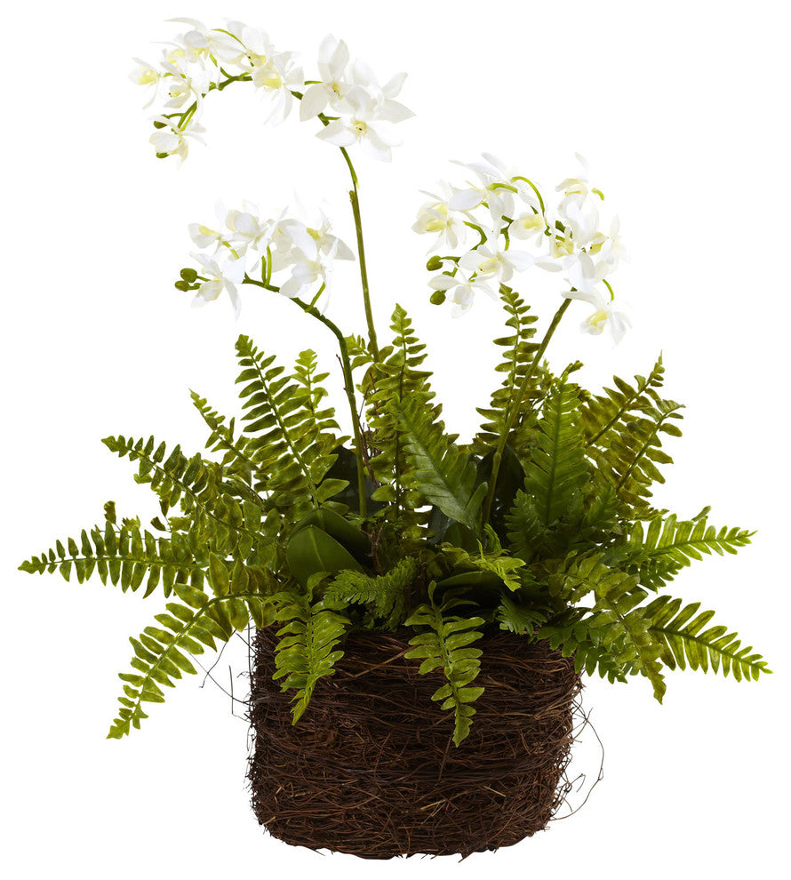 Mini Phalaenopsis and Fern With Bridsnest Planter