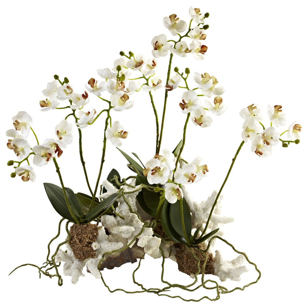 Looking for something with a little more of an ''under the seaflair? Look no further to put those lazy island days within your reach wherever you put this serene plant. Delicate white flowers draw the attention of anyone in the room, especially with its beautiful coral base accenting these cheerful blooms. Whether at your beach condo or in the city, this tropical selection is truly a work of art.