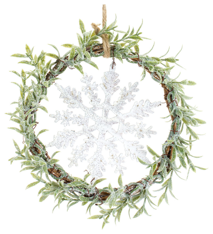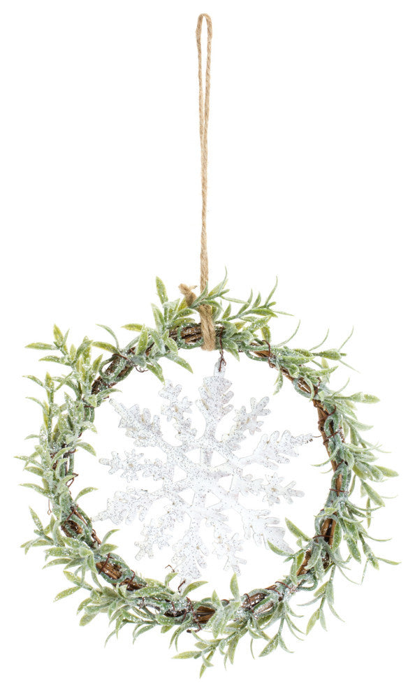 Ring in the holiday season with this beautiful Mini Berry Wreath Candle Ring. The varigated pine with twine hanging tie and snowflake adornment makes this piece a great addition to your Christmas home Decor. The quality plastic composition is sure to last for seasons to come. The high-grade twig base gives the peice additional color and depth. Display the wreath on your front door or entryway to welcome your guests in style, or use it as a table display and put a candle in the center. Candles not included.