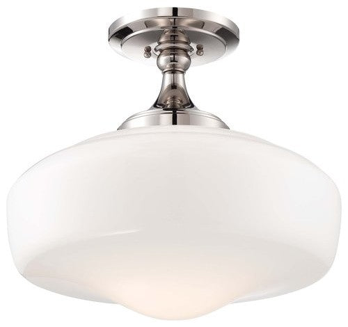 One Light Semi Flush Mount from Semi Flush collection in Polished Nickel finish. Number of Bulbs 1. Max Wattage 150.00. No bulbs included. No UL Availability at this time.