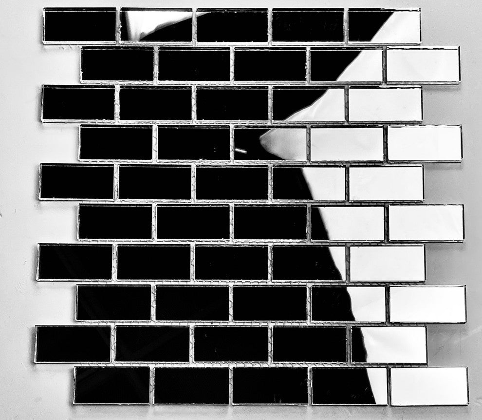 Mirror 1x2 Mesh Mounted Brick Glass Mosaic Tile,Silver, Set of 14 Shts
