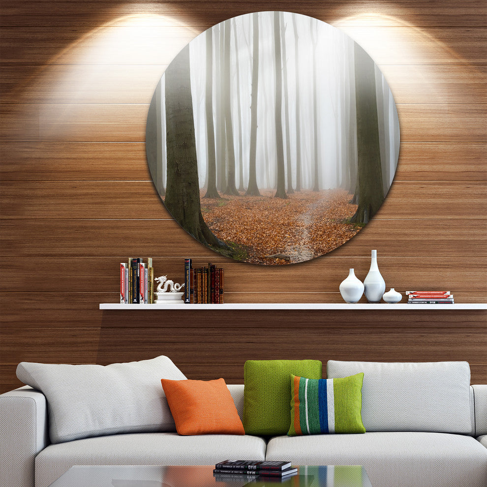 Bring Contemporary Abstraction to your home with this large Circle Metal wall art. This Misty Autumn Beech Forest Metal Artwork makes it the focal point of any room or office.
