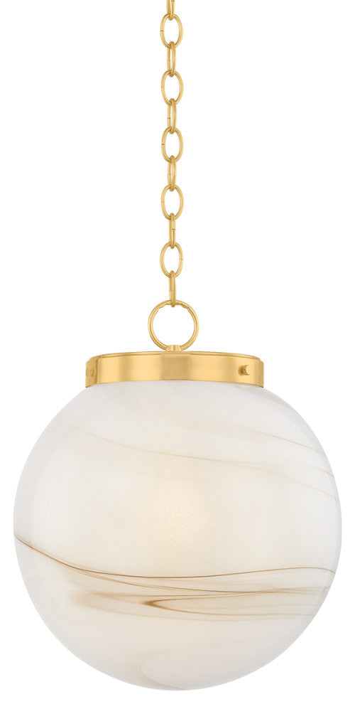 The Ambra pendant''s simplistic silhouette allows its distinctive glass technique to shine. Hand-blown in Mitzi''s factory, the Cappuccino Swirl glass showcases a stunning, marbled appearance with espresso-hued striations. A classic Aged Brass fitter and chain balances the dynamic glass of this pendant. Ambra is available in two sizes.