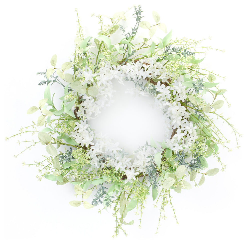 Add a natural pop of color to your front door or living space with this beautiful Mixed Floral Wreath. The bright white flowers paired with the assorted foliage is the perfect combination to create a stunning spring display. The quality fabric flowers and plastic leaves are sure to last for seasons to come.