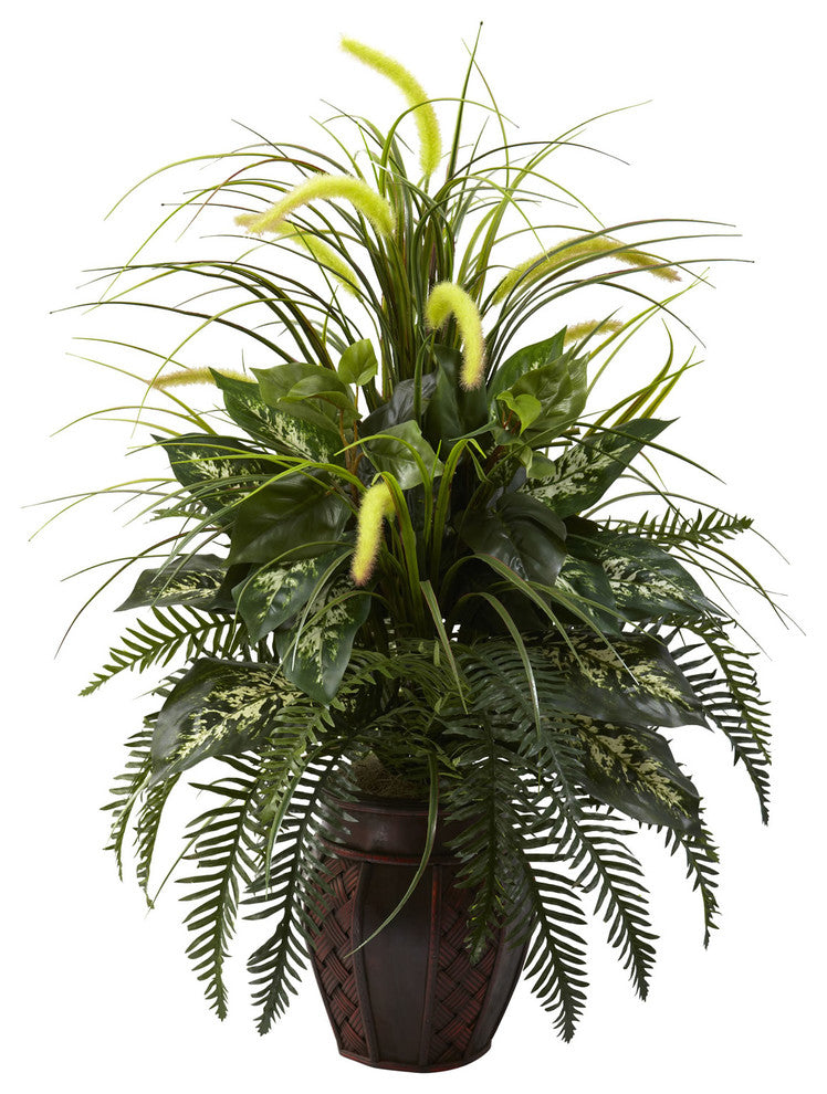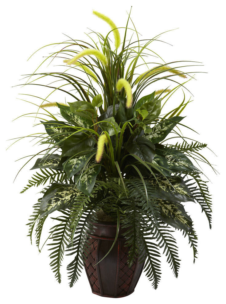 We love it when the summer sun is high, and the green plants and grasses are all at their full, lush peak. And we''ve captured that exact look for all time with this mixed green and cattails assortment. Featuring a bevy of beautiful summer green, topped off by wispy and full cattails in full bloom, this will make you think "summer meadow" even in the middle of winter. Comes with a decorative planter that looks great anywhere.