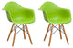 Mod Made Paris Tower Modern Arm Chair with Wood Legs, Set of 2, Green