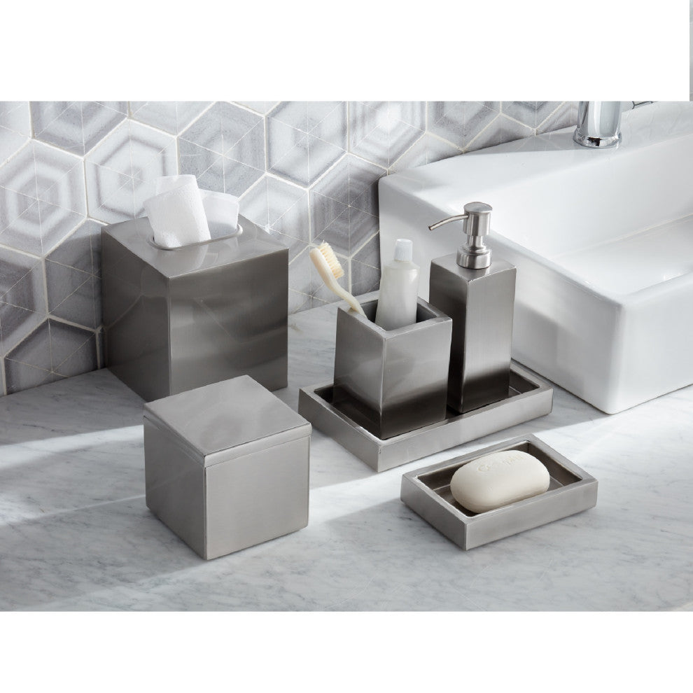 Clean and crisp, this set''s satin finish and well defined edges give your bathroom an updated, modern look.