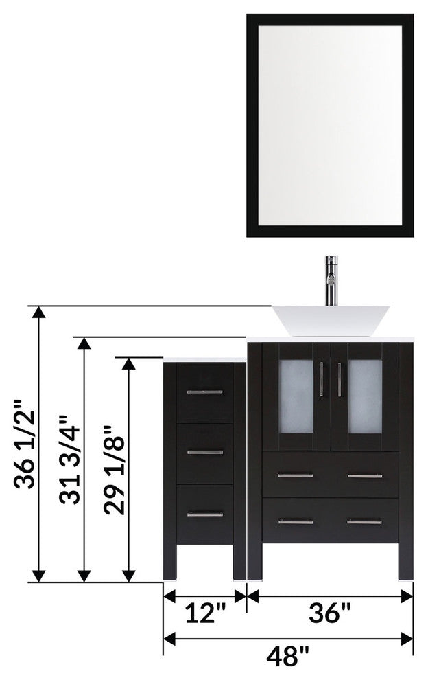 Modern Bathroom Vanity Set With Mirror and Sink, Espresso, 48"