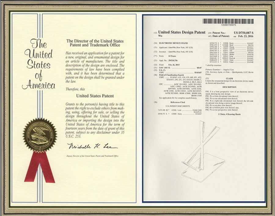 Compatible to all iPhones, Samsung phones and all high-end cell phones.Compatible to iPad mini and Kindle 6" white papers.Stand sturdy. Tapping and swiping without holding.Be a cell phone stand as well as a work of modern art.See coming messages at a glance. Both portrait and landscape viewings.Fit in office, bedroom, kitchen, living room and anywhere.Convenient to charge. Easy to put in and take out.This cell phone stand is created by the designer''s inspiration to create a unique cell phone stand which can be a necessity to home a cell phone as well as a work of modern art to please life. Made of high quality stainless steel, this product is crafted by hand and made with the best workmanship. Its unique design is patent pending in countries. At the bottom a secret code is laser engraved which hides important collectible information. Decoding is provided in a small booklet with the product. It has 2 pads on V arms and 4 pads on the pedestal bottom to prevent scratching. Packed in a gift box which makes it a perfect gift for any occasions. Cell phones and cables are not included.