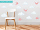 These beautiful and modern cloud wall decals come in a set of 9 clouds in various sizes and 5 birds. They are made from a high quality fabric material that is reusable and repositionable so they are super easy to apply.