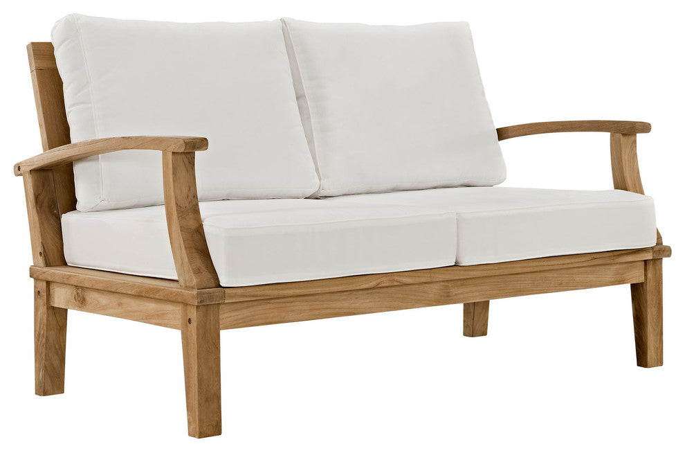 Modern Contemporary 3-Piece Set, Outdoor Patio Teak Sofa Set, White Wood