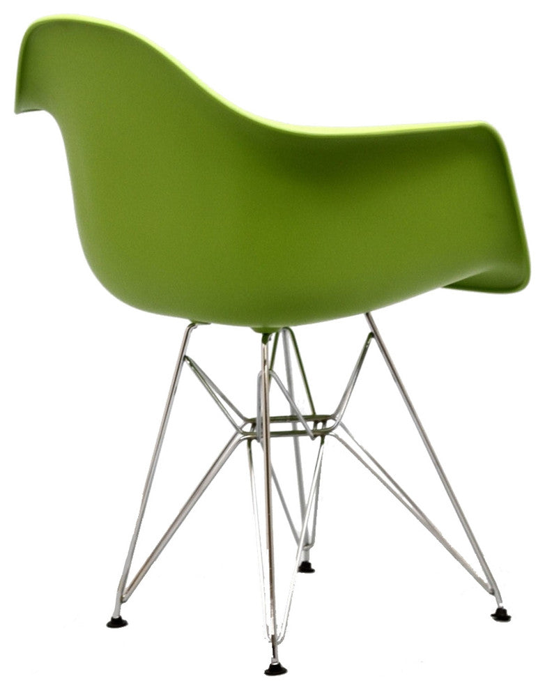 Wire Paris Armchairs are crafted out of molded plastic for the seat and a chromed steel wire "pyramid" base. Comfortable and versatile, this chair can be used to decorate any space.Chromed Steel Base, Plastic Non-Marking FeetFor Indoor or Outdoor UseOverall Product Dimensions: 31"L x 24"W x 21"HSeat Height: 18"HArmrest Height: 25.5"H
