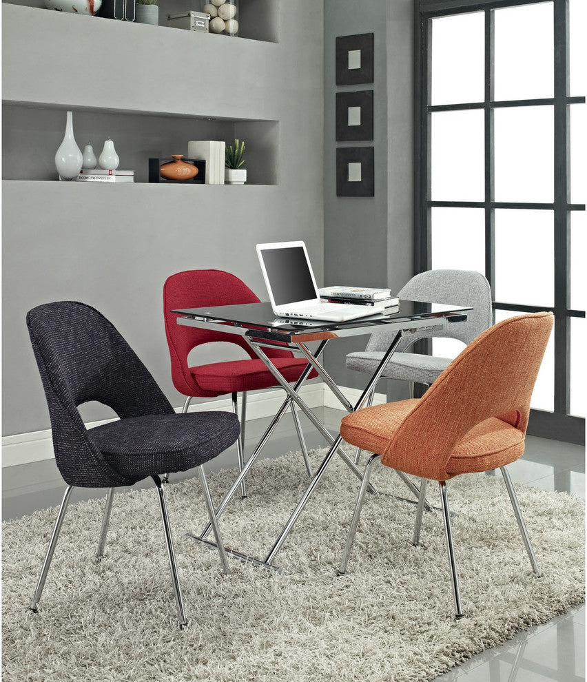 Participate in renewed growth and actualization with the Cordelia Side Chair. Sit comfortably as an aspirational back and up-surging arms compliment a dual-tone tweed fabric cushion. Sleek chrome legs solidify the progress as unlocked potentials are established with ease. Comfort combined with solid form, Dual-tone upholstered tweed cushionChrome legs with non-marking feetOverall Product Dimensions: 17.5"L x 22"W x 33"HSeat Height: 20"H