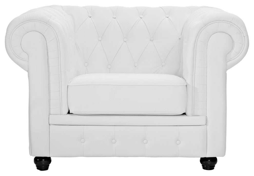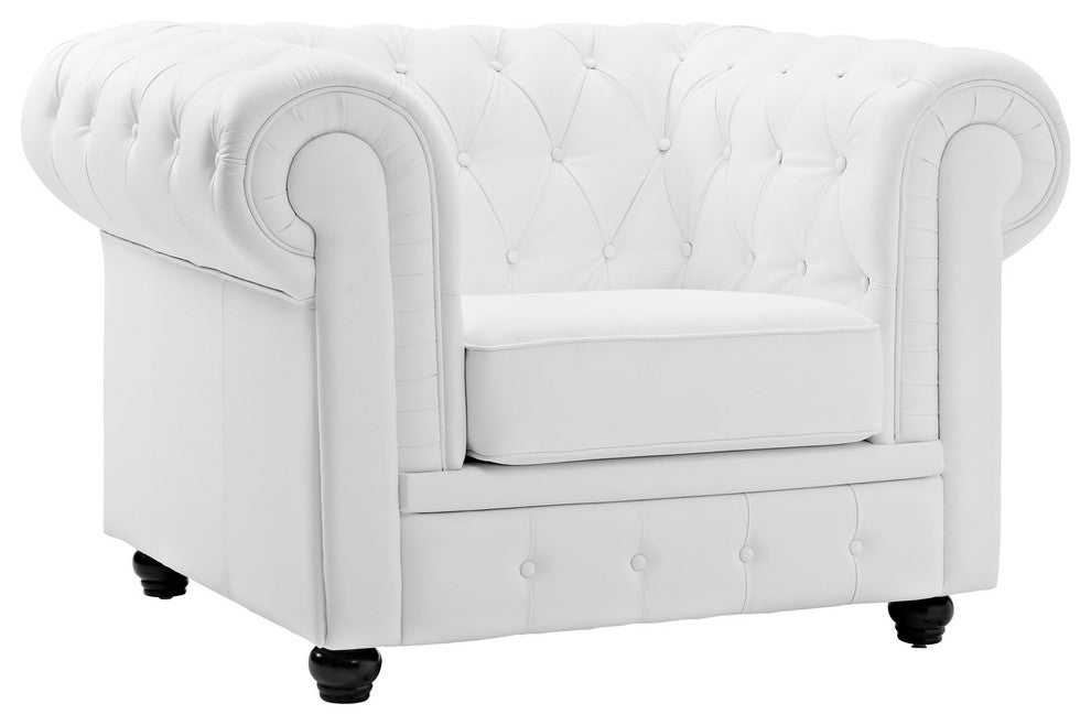 There is something very recognizable about the Chesterfield Armchair. While fashioned with a tufted back, and large rounded arms, the most distinctive aspect is arguably the deep buttons. Their careful positioning throughout helps portray both an aristocratic and settled feel at the same time. First named in 1900 after the Earl of Chesterfield who commissioned it, recognize the ability to join individual elements as you completely inspire your room.For areas seeking cultured elegance, Tightly tailored rolled armsDeep tufting for maximal effect, Genuine leather seat and backSteel base with solid wood legsOverall Product Dimensions: 37.5"L x 47"W x 31.5"HSeat Height: 16.5"H