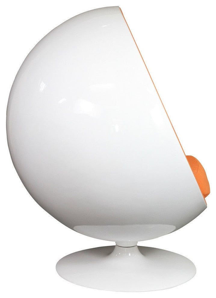 This retro lounge chair resembles a space-age pod creating a spark of interest in anyone who sees it. The fabric lined inner shell offers a sense of privacy and retreat as you relax into the plush cushions. Its exterior is a wonder; a molded fiberglass shell and matching fiberglass base with an integrated swivel mechanism.Fiberglass Shell, Poly / Cotton InteriorSwivel Base, Scratch and Chip Resistant FinishOverall Product Dimensions: 29"L x 42"W x 48"HSeat Height: 18"H