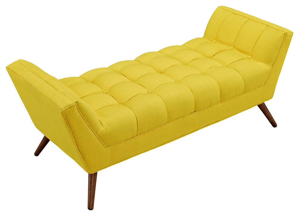 Modern Contemporary Medium Fabric Bench, Yellow, Fabric